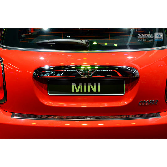 Edelstahl Heckstoßstangenschutz 'Deluxe' passend für Mini One/Cooper F56 3-türer 3/2014- Chrom/Rot-Schwarz Karbon