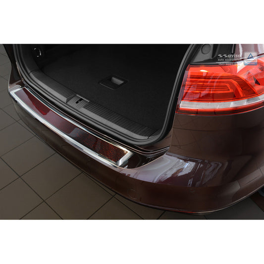 Edelstahl Heckstoßstangenschutz 'Deluxe' passend für Volkswagen Passat 3G Variant 2014- Chrom/Rot-Schwarz Karbon