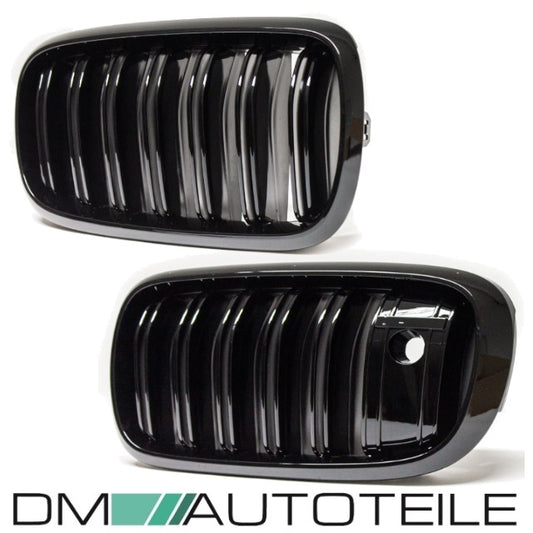 Satz Kühlergrill Schwarz Glanz Doppelsteg passend für BMW X5 F15 +X6 F16 13-17 mit Kamerasystem
