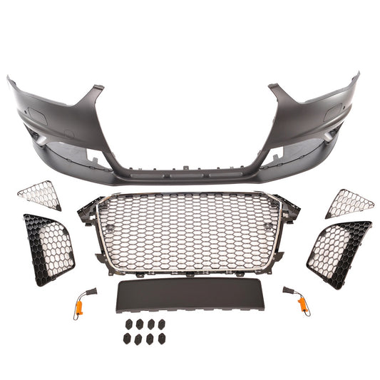 Sport Stoßstange Vorne mit Gitter, Schwarz, AUDI A3 (8V) Sportback Hatchback Facelift 2017-2019 RS3 Stil