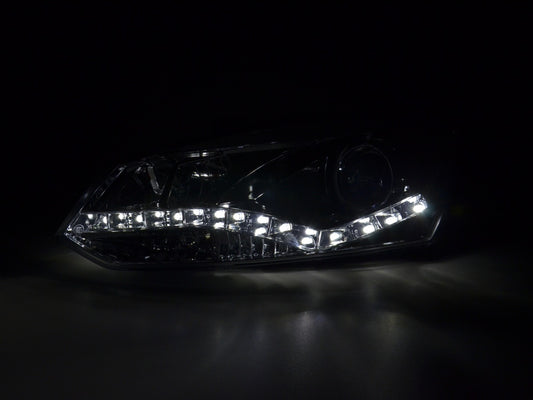 Scheinwerfer Set Daylight LED TFL-Optik VW Polo Typ 6R Bj. 2010- chrom für Rechtslenker