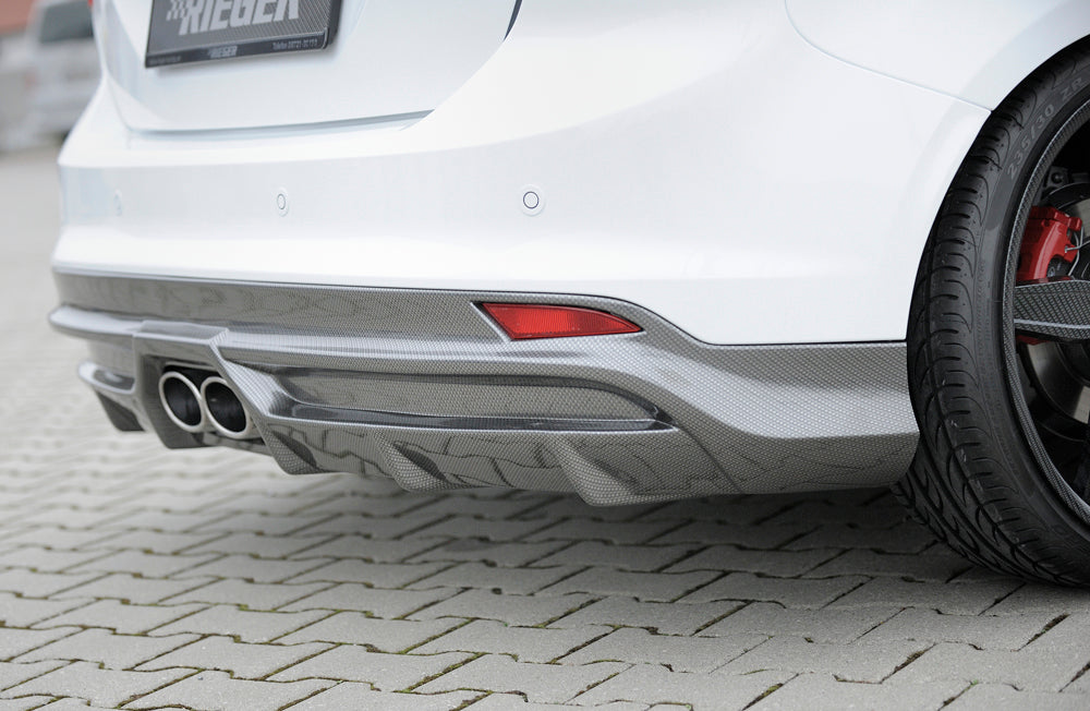 Ford Focus 3 ST Wolf Heckschürzenansatz W1218640 für orig. Endrohr mittig, für Doppelendrohr mittig, (2x120x90mm oval), ABS, Carbon-Look, inkl. Montagezubehör, Gutachten