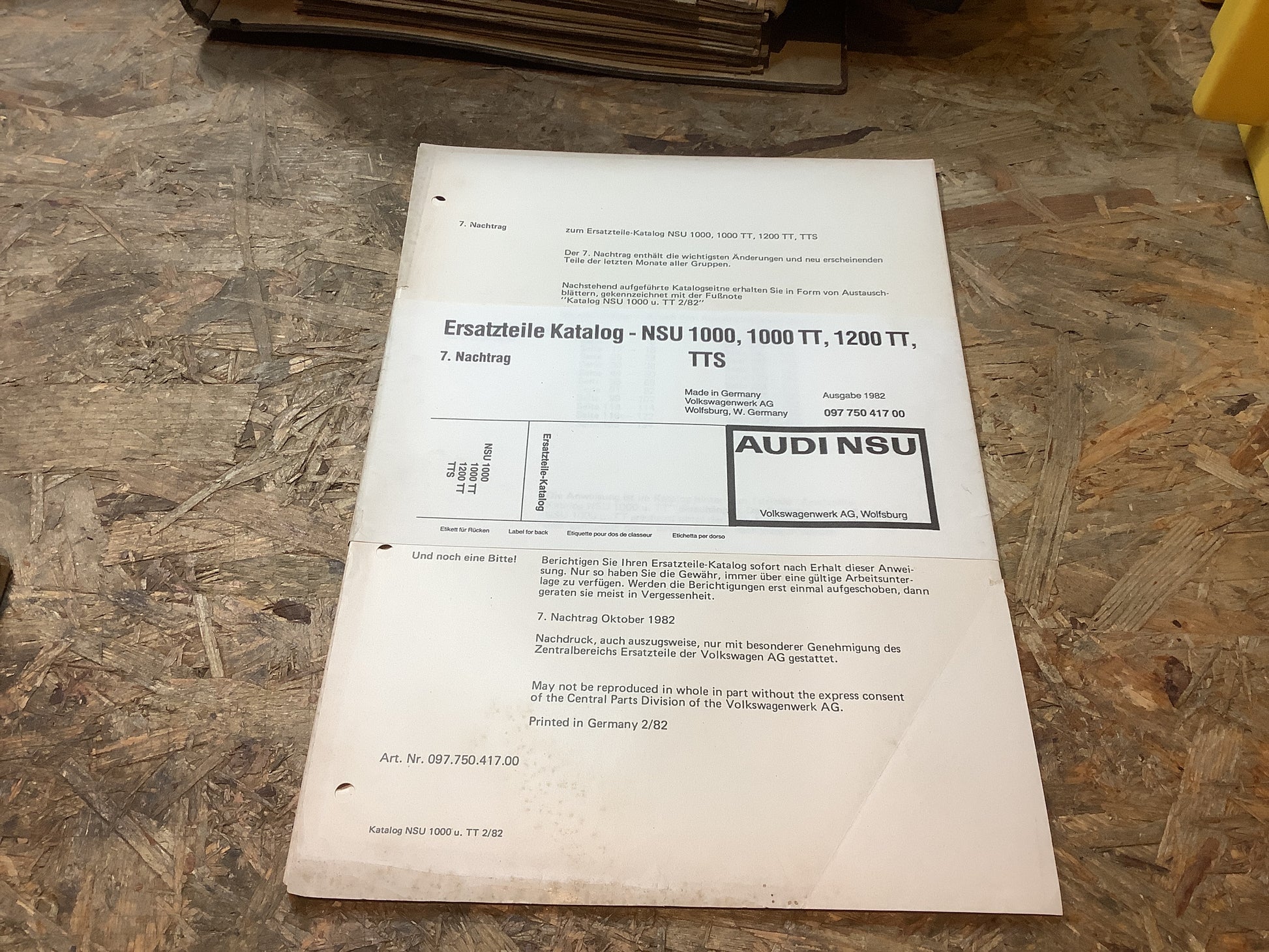 Audi NSU Ersatzteile Katalog-NSU 1000, 1000TT, 1200TT,TTS 7. Nachtrag