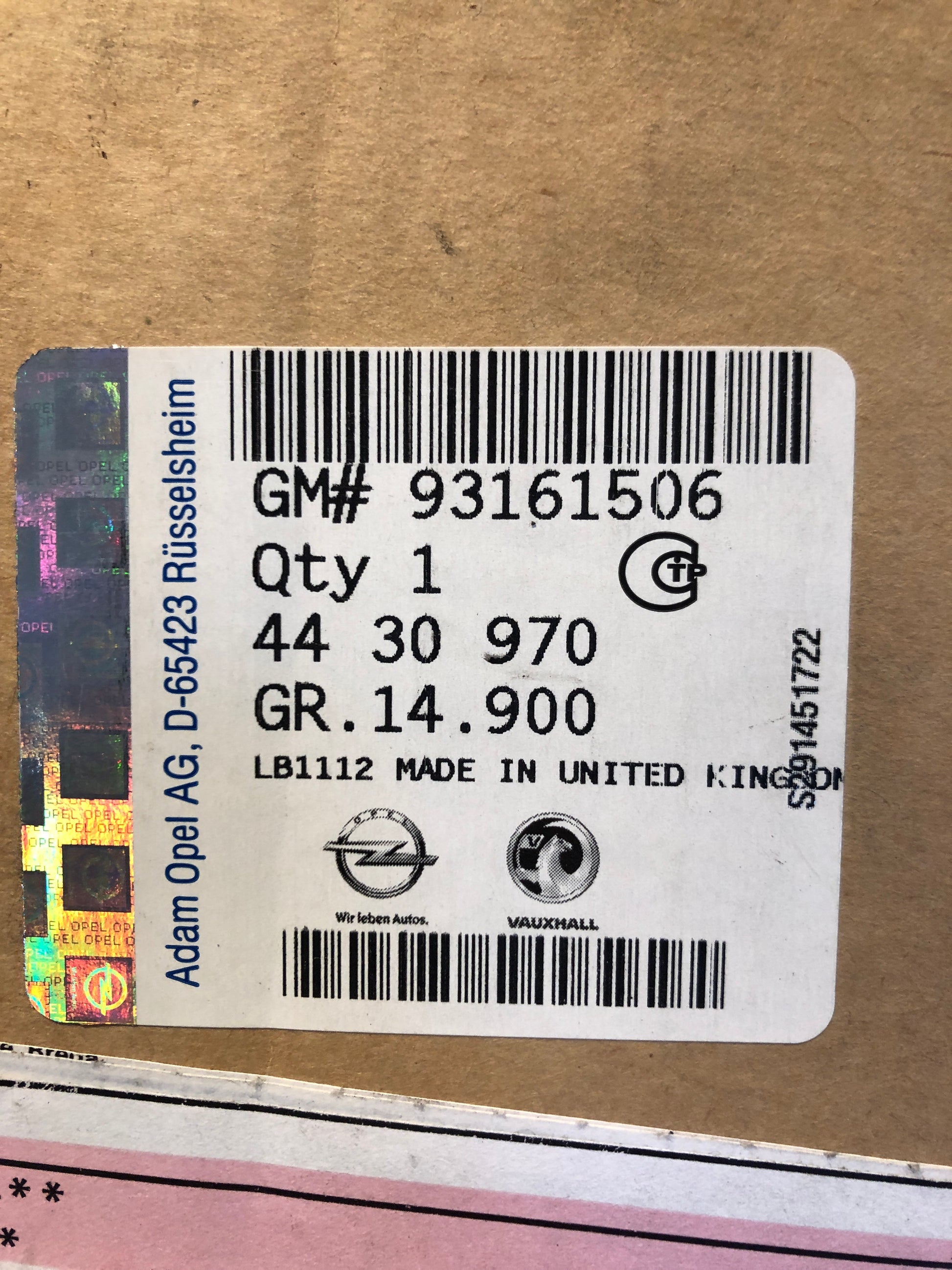 Teilenummer: 93161506 / 44 30 970