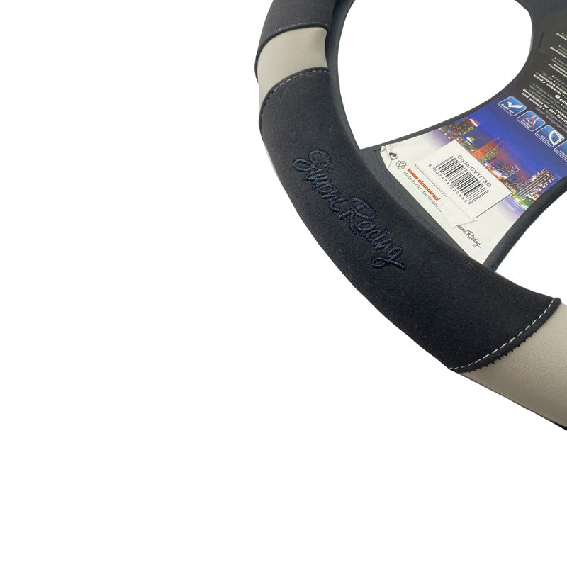 Simoni Racing Lenkradhülle Good Vibe G - 37-39cm - Schwarz Bioleder, Mikrofaser, Karbon-Optik, Graue Akzente