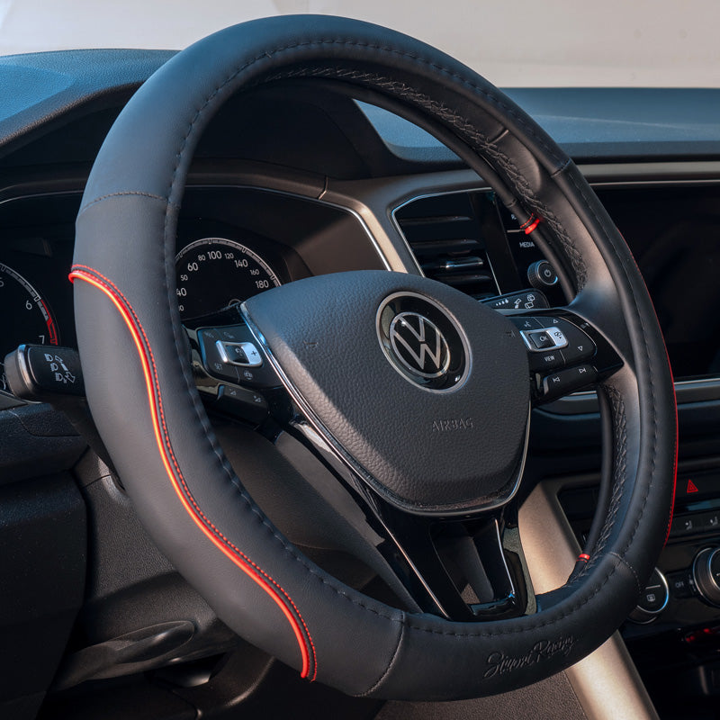 Simoni Racing universeller Lenkradüberzug Pretty Black. Schwarz Bioleder, für Lenkräder mit einem Durchmesser von 37-39cm