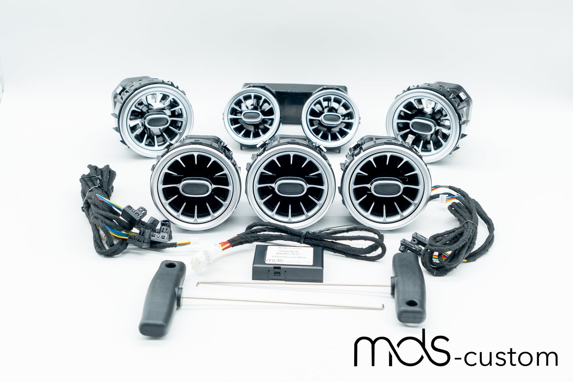 Erwecke das Interieur deiner Mercedes C-Klasse W205 (inklusive A205, S205 und C205) mit stilvoller Ambientebeleuchtung in den Lüftungsdüsen zu neuem Leben. Unser Nachrüstsatz bietet eine perfekte Kombination aus Funktionalität und Design und wird mit einer Schritt-für-Schritt-Anleitung sowie einem Ausziehhaken für die einfache Entfernung der Lüftungsdüsen geliefert. Spare Zeit und Geld, indem du deine Ambientebeleuchtung selbst nachrüstest – schnell, einfach und ohne großen Aufwand.
